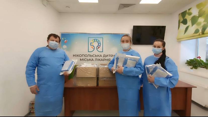Лікарі Нікопольської дитячої міської лікарні Нікопольської міської ради отримали від нашого фонду одноразові медичні халати та одноразові хірургічні костюми.