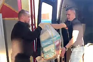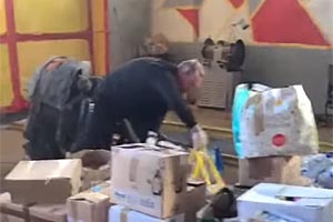 Коробки з одягом, підгузками для дорослих, численними медичними засобами, такими як: нитки, бинти, рукавички, бочки тощо. Частину медичного майна вже